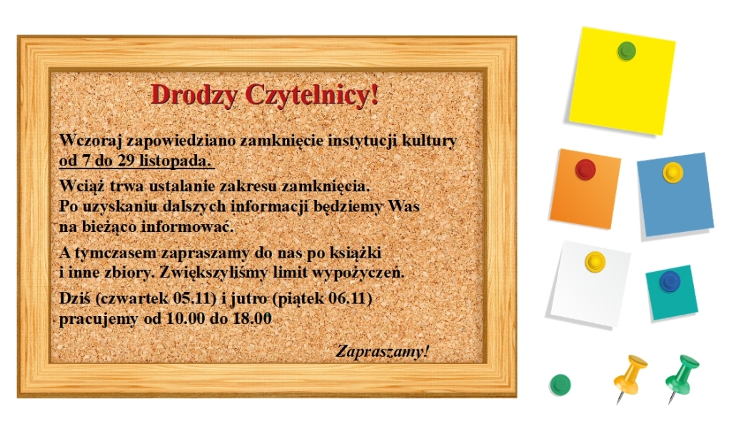 A tymczasem zapraszamy do nas po książki i inne zbiory. Zwiększyliśmy limit wypożyczeń.
