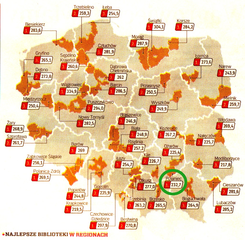 W tegorocznym rankingu Miejsko-Gminna Biblioteka Publiczna im. A. Mickiewicza w Połańcu znalazła się na pierwszym miejscu spośród bibliotek województwa świętokrzyskiego.
