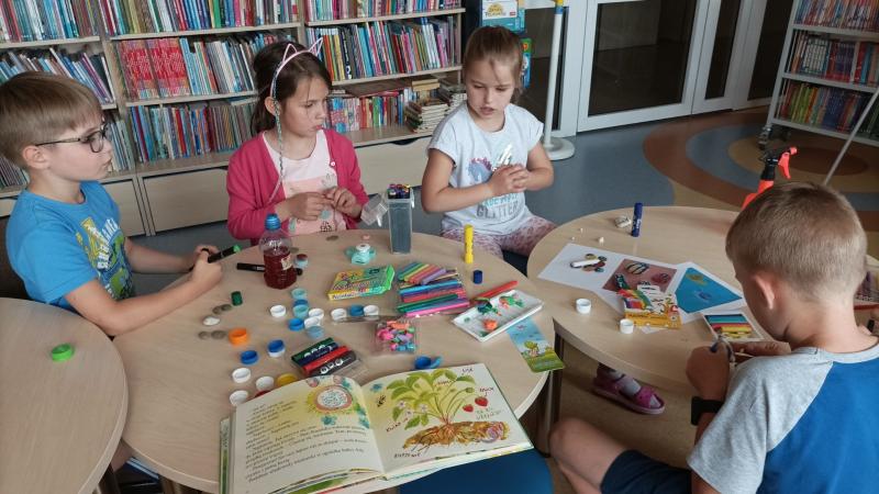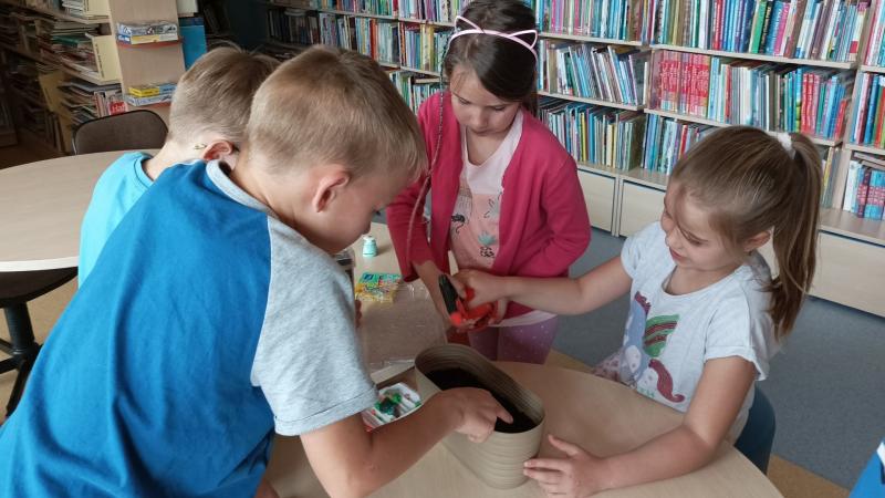 Bawiliśmy się także w małych ogrodników i zasialiśmy wspólnie ziarenka do doniczki. Dzieci obiecały odwiedzać bibliotekę podczas wakacji i sprawdzać co z nich wyrośnie. Bo jak powiedział Cyceron„Do