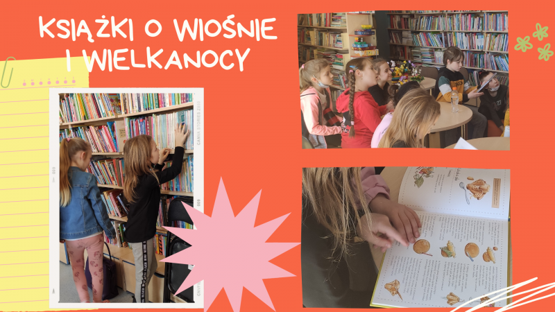 Zdjęcie kolorowe, dzieci ze świetlicy szkolnej na spotkaniu wiosennym w Bibliotece