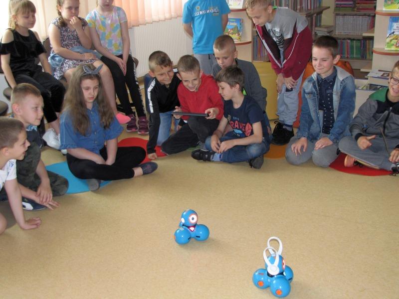 Z okazji Tygodnia Bibliotek w dniach od 21 do 30 maja w Bibliotece w Połańcu i jej Filii w Ruszczy odbywały się zajęcia z robotami Dash i Dot. Przeszło 300 osób, głównie dzieci, ale też i osób dorosłych (w tym uczestników Warsztatu Terapii Zajęciowej w Połańcu), spotkało się z naszymi "pupilami" by dowiedzieć się o podstawach kodowania robotów.