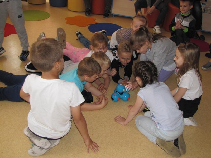 Temat ten nie jest Bibliotece obcy. Jakiś czas temu odbył się cykl warsztatów dla młodzieży z kodowania w edytorze Scratch. Wtedy młodzi ludzie uczyli się podstaw programowania dzięki wykorzystaniu robotów Finch. Tym razem w roli głównej wystąpiły roboty Dash i Dot, zaprojektowane z myślą o młodszych uczestnikach. Ich działanie można było poznać już podczas tegorocznych ferii zimowych.