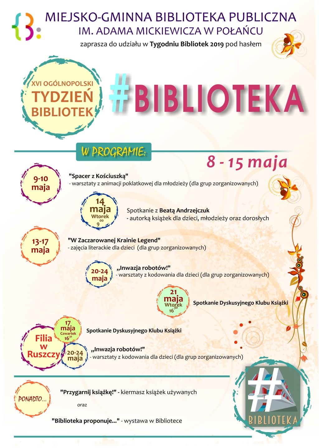 Zapraszamy do udziału w XVI Ogólnopolskim Tygodniu Bibliotek. W tym roku obchodzimy go pod hasłem "#biblioteka".