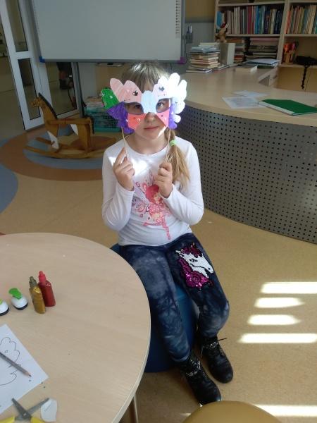 „W karnawale czas na bale”. Pod tym hasłem odbyła się zarówno w Bibliotece w Połańcu jak i w Ruszczy zabawa, podczas której dzieci przygotowywały maski karnawałowe. Miały do dyspozycji kolorowy papier, brokat, cekiny i piórka. Wykorzystały do pracy różne formy i szablony. Realizowały także własne pomysły. Powstały maski zwierząt oraz bogato zdobione cekinami, piórkami i brokatem idealne do przebrania za księżniczki. Po przyklejeniu do patyczków maski były gotowe. Można je było zabrać ze sobą do domu i zaprezentować się w nich na balu.