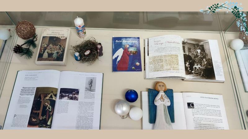 Zapraszamy do obejrzenia wystawy w Bibliotece "O początkach świętowania - zima" przygotowanej z okazji nadejścia zimy. W gablotach znalazły się książki ze zbiorów Biblioteki oraz najważniejsze symbole i atrybuty związane z zimowymi świętami, w tym pamiątkowe świece gromniczne z wosku, figurki Świętej Rodziny wystrugane z drewna oraz maski karnawałowe. Wystawa uzupełniona została o plansze z informacjami o pochodzeniu najważniejszych zimowych świąt i związanymi z nimi zwyczajami: Wiglii, Bożego Narodzenia, Nowego Roku, Świąta Trzech Króli i Matki Boskiej Gromnicznej.