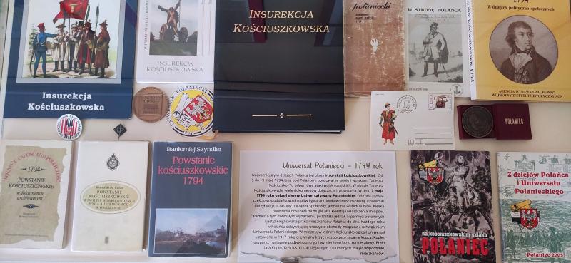 Na ekspozycję składają się książki ze zborów Biblioteki dotyczące historii Połańca, kopie dokumentów potwierdzających nadanie praw miejskich i ich utratę, treść Uniwersału Połanieckiego i inne materiały źródłowe. Wystawa uzupełniona została o kosynierski strój i kosę.