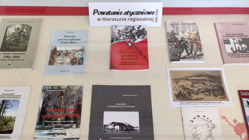 Biblioteka przygotowała wystawę „Gloria Victis 1860-1864” upamiętniającą Powstanie i bohaterskich Powstańców w literaturze faktu, powieściach, publikacjach regionalnych oraz malarstwie. Wystawa książek ze zbiorów własnych Biblioteki uzupełniona o informacje oraz wydruki pochodzące ze zbiorów biblioteki cyfrowej Polona.