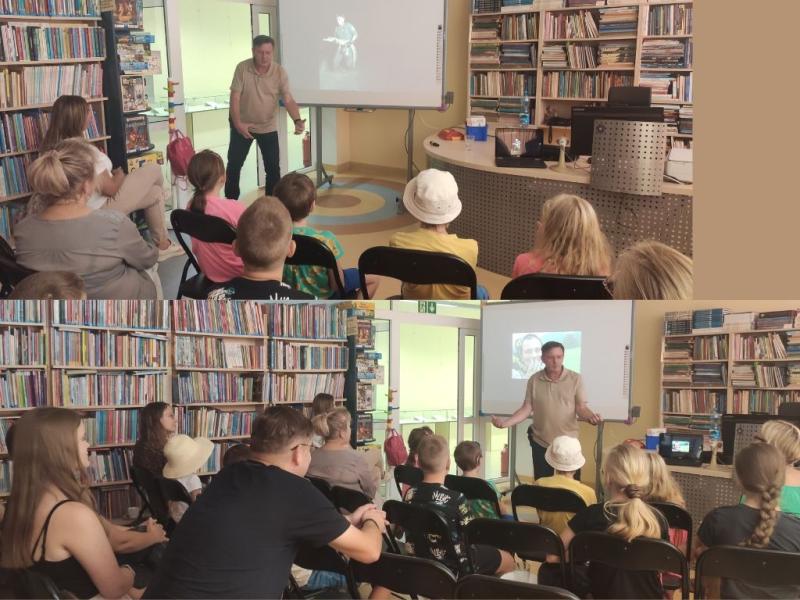 O tym wszystkim uczestnicy sobotniego wydarzenia mogli się dowiedzieć na poprzedzającym grę detektywistyczną spotkaniu autorskim, które odbyło się o godzinie 11.00 w Bibliotece. Spotkanie zatytułowane zostało „Detektyw z plecakiem - opowieść o śledztwach na trzech kontynentach” i stanowiło wprowadzenie do dalszej części wydarzenia. Pisarz skupił się na swoich książkach i wspomnieniach z dalekich podróży do Ameryki Południowej, na Syberię i do innych nieodkrytych zakątków świata. Pokazywał zdjęcia z wypraw i ciekawie opowiadał o napotkanych po drodze ludziach. Wciągająco i nieco przerażająco relacjonował swoja wyprawę między innymi w rumuńskie Karpaty śladami Wlada Palownika, legendarnego hrabiego Drakuli, znanego ze swojego okrucieństwa.