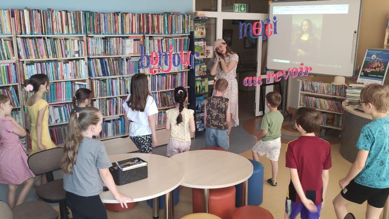 Spotkanie było okazją do pogadanki o Francji i jej kulturze. Dzieci uczyły się śpiewać po francusku piosenkę "Panie Janie" przygrywając przy tym małym dzwoneczkiem. Wspólnie odwiedziliśmy także muzeum w Luwrze, gdzie przyjrzeliśmy się Mona Lizie, chyba najsłynniejszemu obrazowi na świecie. Nawet przez chwilę niektóre Biblioludki pozowały do portretu malarzowi.