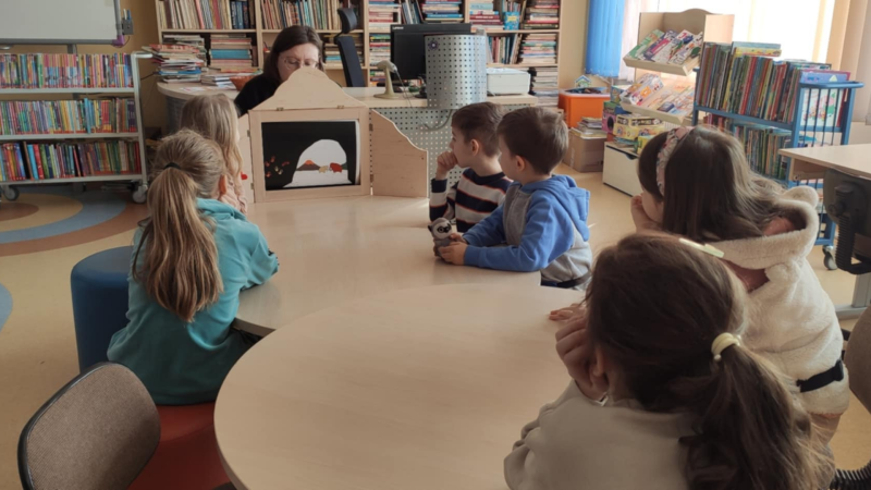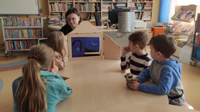 Na spotkaniu gościliśmy panią Ewelinę Fitał, która zgodziła się Biblioludkom przybliżyć język francuski. Dziecii wysłuchały legendy o śpiących rycerzach w Tatrach w formie teatrzyku kamishibai przeczytanej po polsku i po francusku.