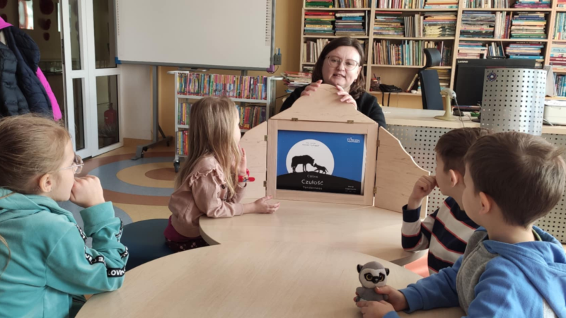 25 listopada w Dzień Pluszowego Misia w Bibliotece odbyły się zajęcia, podczas których Biblioludki przekonały się, jak to jest być lektorem bajki kamishibai. Przeczytali bajkę "Złotowłosa i trzy misie" i to w dwóch językach - po polsku i angielsku.