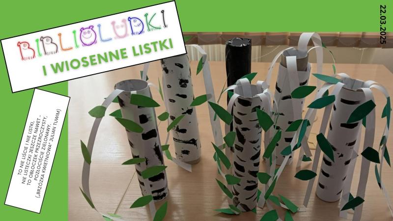 W sobotę 22 marca podczas spotkania Biblioludków czytaliśmy wierszyki o drzewach, rozmawialiśmy o wiośnie i jej pierwszych zwiastunach. Dzieci z zaangażowaniem wykonały śliczne, wiosenne brzózki z papieru. Było dużo wycinania, klejenia i malowania farbami. Wiosenne spotkanie umiliły nam również gry planszowe i karciane.