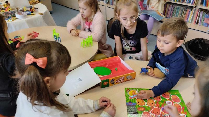 szczęścia człowiekowi potrzeba ogrodu i biblioteki.” Były także zadania do wykonania z serii „Czego potrzebują rośliny”, obrazki do ułożenia według etapów rozwoju roślin i zagadki. A na koniec zagraliśmy w gry planszowe „W ogrodzie” i „Pszczółki”, których fabuła idealnie skomponowała się z tematem spotkania.