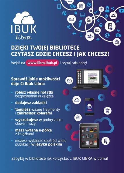 Czym jest Ibuk Libra możesz dowiedzieć się tu: https://www.mgbp.polaniec.pl/index.php/informacje/438-czytaj-gdzie-chcesz-i-jak-chcesz-ibuk-libra92