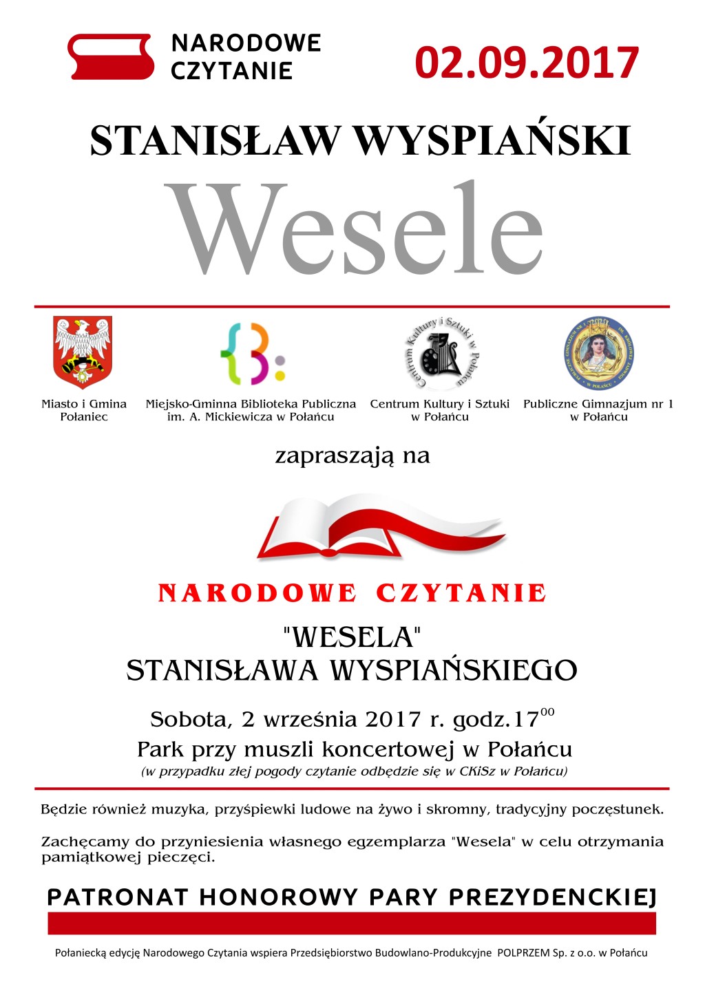 Burmistrz Miasta i Gminy Połaniec, Centrum Kultury i Sztuki oraz Miejsko-Gminna Biblioteka Publiczna w Połańcu zapraszają do udziału w zainicjowanej przez Prezydenta Rzeczypospolitej Polskiej Bronisława Komorowskiego akcji "Narodowe Czytanie". W tym roku czytane będą utwory Aleksandra Fredry - najwybitniejszego polskiego komediopisarza, od którego narodzin mija właśnie dwieście dwadzieścia lat.