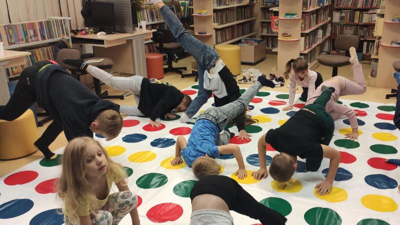 Po filmie i spotkaniu z Baristą na wszystkich czekało jeszcze wiele atrakcji. Były gry wielkoformatowe, planszówki, zabawy plastyczne, czytanie bajek i dużo swobodnej zabawy między regałami. Niestety nikt nie spotkał się z bibliotecznym duchem. Wygląda na to, że nasza Biblioteka nie jest jednak nawiedzona. A może duch nie spodziewał się takiego gwaru w godzinach, gdy zwykle w Bibliotece nie ma nikogo i ze strachu zwiał gdzie pieprz rośnie? Kto to może wiedzieć?