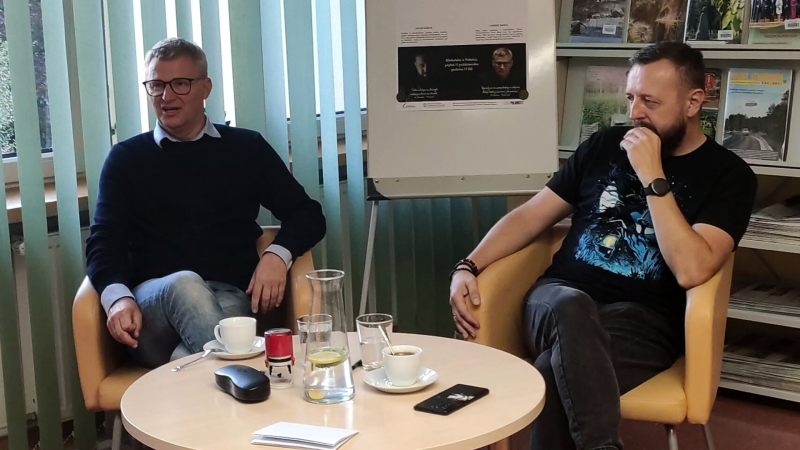 Niewątpliwie największą atrakcją Nocy Bibliotek było spotkanie „Oko w oko ze zbrodnią”, na szczescie tylko na kartach powieści autorstwa naszych znakomitych gości - Mariusza Kaniosa i Michała Śmielaka.