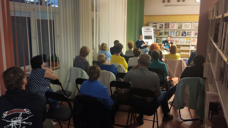 Zdjęcie kolorowe, uczestnicy Nocy Bibliotek w Bibliotece Publicznej w Połańcu