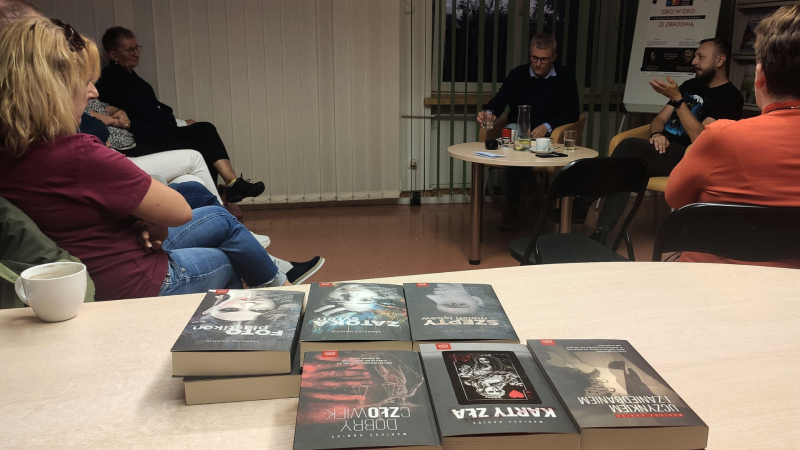 Spotkanie autorskie zatytułowane „Oko w oko ze zbrodnią” zorganizowano w ramach zadania „Strasznie dobre książki!”.