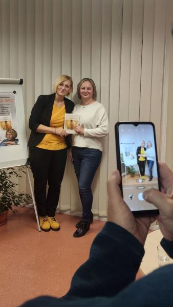 Spotkanie przebiegało w wyjątkowym, bożonarodzeniowym klimacie. Przestrzeń biblioteki została udekorowana świątecznymi ozdobami, a ciepłe światło lampek i zapach choinki sprzyjały rozmowom i refleksji. Autorka opowiedziała o genezie książki, inspiracjach czerpanych z lokalnych tradycji oraz o znaczeniu karpia z Sierag jako elementu regionalnego dziedzictwa kulinarnego, szczególnie w kontekście świąt Bożego Narodzenia.