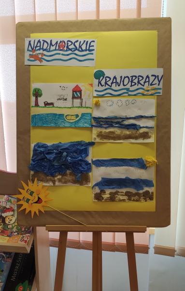 Zdjęcie kolorowe, prace dzieci wykonane podczas wakacji w bibliotece