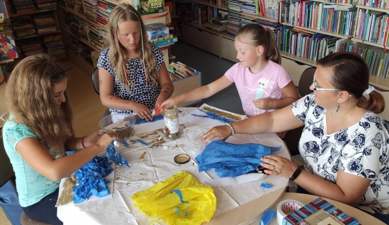Zdjęcie kolorowe, wakacje w Bibliotece, uczestnicy warsztatów