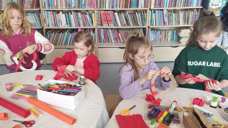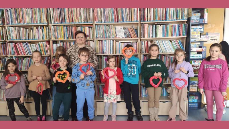 W czasie ferii zimowych biblioteka zorganizowała dzieciom ciekawe zajęcia literackie, plastyczne i kreatywne. Pierwszym zajęciom towarzyszył motyw Walentynek. Wykonaliśmy serca z papieru i bibuły, które zostały ozdobione brokatem, cekinami i kokardkami. Obdarowani na pewno byli nimi zachwyceni. W walentynkowy klimat wprowadziło nas opowiadanie „Zawiłości miłości” Doroty Gellner, które było inspiracją do zadawanych zagadek na temat miłości i przyjaźni.